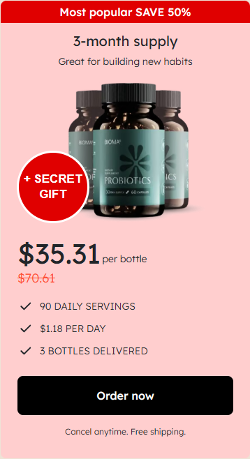 At this moment, you can order Bioma Probiotics supplement for 73% OFF + FREE Shipping.